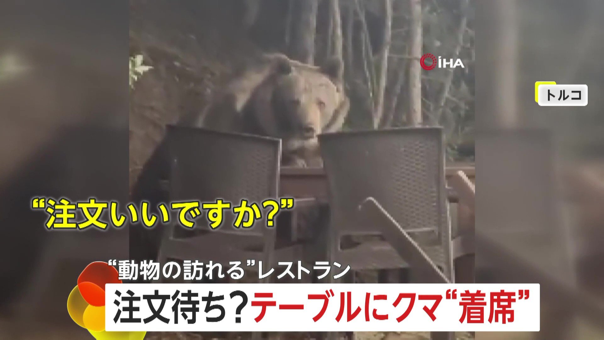 レストランのテラス席にクマが着席!?「酔っぱらってる?」目が据わり食べ残しを“つまみぐい” トルコの国立公園(FNNプライムオンライン)